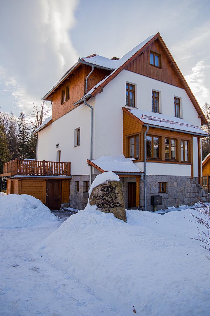 Zapraszamy do Willi Dzika Róża, która oferuje 2,3 lub 4 osobowe pokoje z łazienkami oraz apartament z tarasem. Do dyspozycji naszych gości w pensjonacie pozostaje duża kuchnia z salonem oraz kominkiem, narciarnia czy miejsce na rowery.